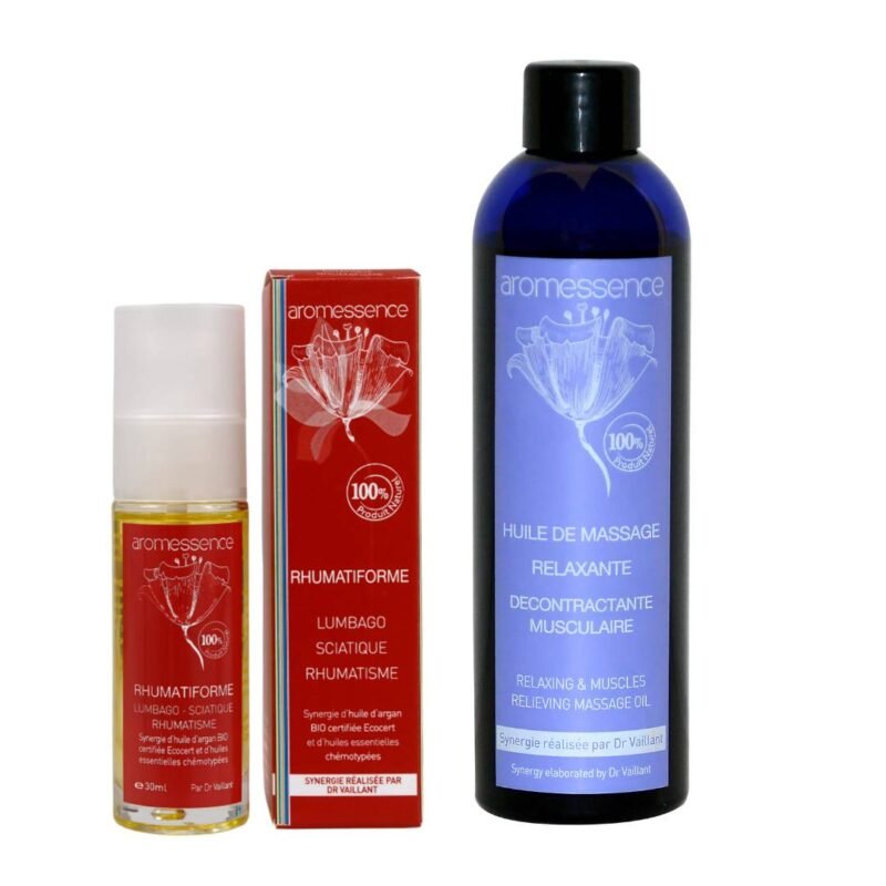 Les synergies d’huiles essentielles Aromessence sont le fruit de plus de 40 ans de recherches et d’études en aromathérapie. Chaque synergie Aromessence a été développée pour soulager certains soucis de santé, tels que les douleurs musculaires, les douleurs mensturelles, le rhume, la grippe, la toux, le stress, le mal de tête, la sinusite, chute de cheveux…