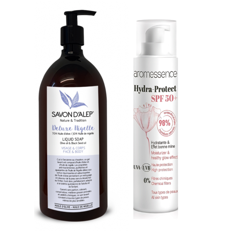 Avec ma peau tres allergique , j ai opté pour le savon d alep premium pour le corps et le visage, l huile de verveine pour l hydratation et la crème solaire spf50 . Excellent résultat. Je recommande vivement